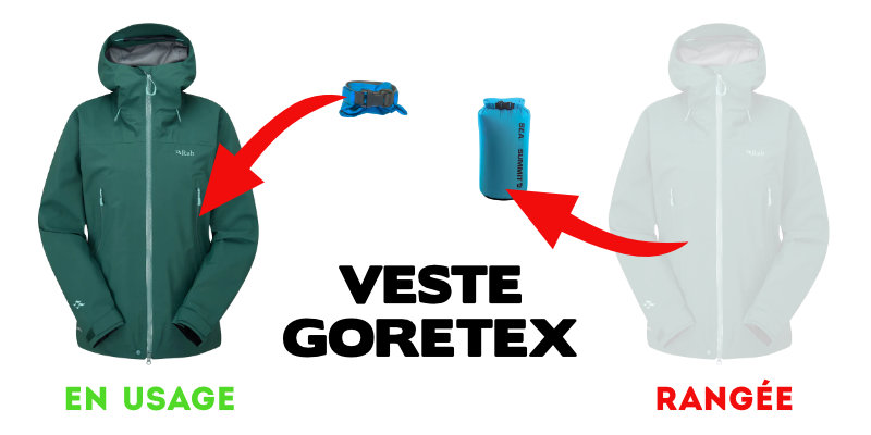 D'autre part, la pratique qui consiste à placer sa veste de pluie dans une housse étanche va permettre de la ranger facilement dans le sac à dos, de la retrouver encore plus facilement.